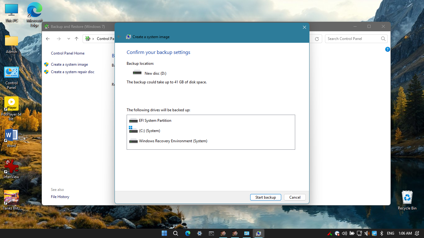 Почему не могу создать образ системы на второй жёсткий диск? windows 10 нормально создавала
