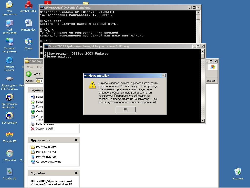 сейчас другая хня... на чистый компьютер поставил офис 2003 зашел на office.microsoft.ru, от туда и скачал список предложенных обновлений,сейчас выдаёт такую ошибку... |