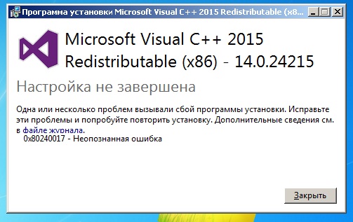 Установка - Ошибка 0x80240017 при установке Visual C++ 2015 и 8024200D при обновлении