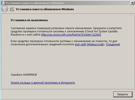 windows6.1-KB976932-X86.exe - тут вылазит ошибка 0x800f081f |