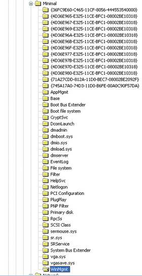 Профиль | Отправить PM | Цитировать Sp1nal, приведите содержимое раздела реестра HKEY_LOCAL_MACHINE\SYSTEM\CurrentControlSet\Control\SafeBoot\Minimal