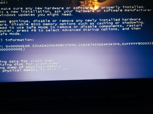 0xc000000e. Просторы гугла пишут, что нужно ребилд BCD сделать. Сделал, ошибка ушла, но на её смену пришла другая 0xc00000428 windows failed to start because can't check digital signature OEM-64.sys driver. Вообщем система не может проверить цифровую подпись драйвера,драйвер по гуглу принадлежит к драйверам, которые создаются при активации системы. Обойти его решил выбрав через F8 режим без проверки подписи, система стала грузиться и я уже успел обрадоваться, но при загрузке всех элементов автозагрузки (примерно через 2 минуты) вылетает Bsod. Фотки прилагаю. Что я уже пытался делать: Попытался включить в элементах автозагрузки "Диагностический запуск" для выявления приложения, которое сбоит, но такие манипуляции сопровождались подвисанием и Bsod. Грузился с ERDC, восстановление запуска не может решить проблему, восстановление системы ошибку выкидывает, проверка целостности системных файлов не выявила поврежденных. Проверял винчестер Victoria, Acronis Disk Director, Hdd Regeneretor и наконец чекдиском на другой машине - все в порядке. Вытаскивал по очереди планки памяти, хотя может нужен расширенный тест Антивирус установлен KIS 2014 лицензионный, вероятность вирусного поражения небольшая,тем более не лажу где не надо. В снимках Бсода разобраться мне не удалось, при загрузке системы вылез отчет о сбое системы, его тоже фоткал. Помогайте товарищи пожалуйста. |