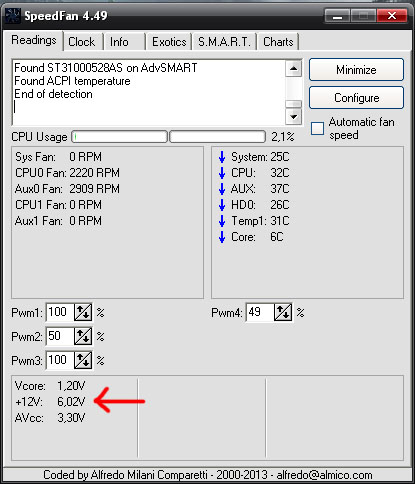 Комп как то вис всегда но редко и я особо не придавал этому значения. Но вот недавно начались просто ужасные вещи. Зависания сразу же при загрузках и вообще рандомно, когда ему захочется. Иногда можно было играть игру пол дня и ничего, а включив "калькулятор" - зависание. Причем виснет сразу намертво. Спасал только РЕСЕТ. Та и спасает. Перестал зависать так часто как раньше, после того как переставил перемычку на плате. Но всеравно. сейчас от 1 до 5 раз в день должен зависнуть. Сегодня правдараз, но еще не ночь. Грешил на все и перепробовал наверное тоже все. Даже отключал БП и запускал отдельно от платы. Тестер показал вюду отличные показатели, на всех контактах. Но вот что насторожило - это разные показания эвереста, спидфана и CPUID оп линии 12 В на БП. Эверест: http://forum.oszone.net/attachment.p...1&d=1395772308 Speedfan: http://forum.oszone.net/attachment.p...1&d=1395772308 CPUID: http://forum.oszone.net/attachment.p...1&d=1395772308 Но тестер говорит, что все гуд. БП 350 Вт. Правда ему около 5 лет. Но зависания начались пракитически сразу после покупки и сейчас только участились. Тест винта и оперы ничего не показал. Опера тестировалась с флешки из под биоса. Винт выдал только пару красных секторов и ни одного бэда. Конфигурация: Система - ХР Материнка - Abit AN52N Проц - Athlon X2 DealCore BE 2300 1,9Ггц ОЗУ - 2 Ггб Винчестер - Seagate Barracuda 1Tb Видео - ATI Radeon X1650 http://forum.oszone.net/attachment.p...1&d=1395772880 |