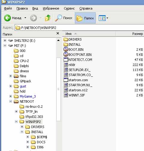 В завершении осталось только файлы из каталога SYS скопировать в E:\NETBOOT\WINXPSP2\INSTALL\I386.