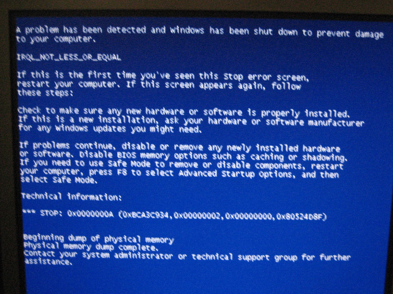 Компьютерный форум OSzone.net » Сфера Microsoft » Устранение критических ошибок Windows » BSOD - 0x0000000A: IRQL_NOT_LESS_OR_EQUAL