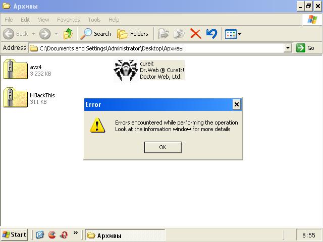 Профиль | Сайт | Отправить PM | Цитировать Brothermechanic, В безопасном режиме CureIt тоже выдает ошибку?