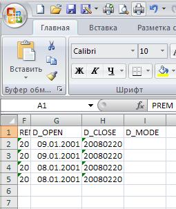 Де нет же... ( "24.99" "88.88" - это текстовые значения, они даже суммироваться не хотят. а 3 ноября 2008 - это уже дата. Если перевести ее в числовой формат - получается, 39755,00 тоесть форматами уже ничего не зделаешь. Так я их получил при импорте. Это в импорте дело... Я точно знаю, если в 2003 екселе делать это без указания разделителя целой и дробной части , получится именно так (с текстом, с датами). А когда указать разделитель - точка, должно все сработать. Ексель 2003 делает мне числа успешно, а 2007 при тех же самых коммандах - не делает. Вот. Просто я делаю это не первый раз, и тут бац - глюк. Думал, может какие-то настройки там... или еще что-то. Codru, на вашем скриншотике я вижу только первые 4 столбца A:D. А даты (проблемные столбики) как раз G:H Вы смотрели там тоже??? Я даже скриншотики свои был отправил в случае, если что-то будет отличаться. Там должны быть разные данные. Посмотрите еще раз в столбцах G:H, прошу. Ну ДБФ-ка такая просто. Оригинальная. Не хотел ее менять. У меня так (см. изобр.) |