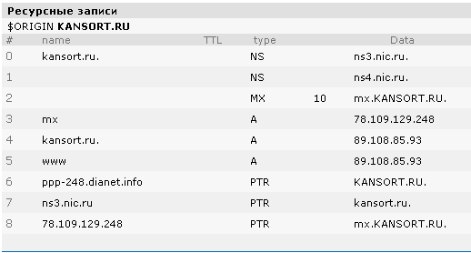 Профиль | Сайт | Отправить PM | Цитировать Ну вот на ns3.nic.ru и нужно создать запись. Кстати MX у вас нацелена на mx.kansort.ru, это имя принимающего сервера. Сделайте, чтобы он и представлялся таким именем, и чтобы PTR на него выводила. Тогда все заведется.