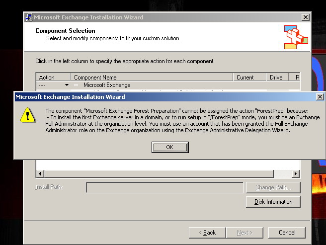 forestprep и domainprep сделал в первую очередь! dcdiag, netdiag в норме... Интересно что делать с ошибками? Может проще будет 2000 Exchange поставить... |