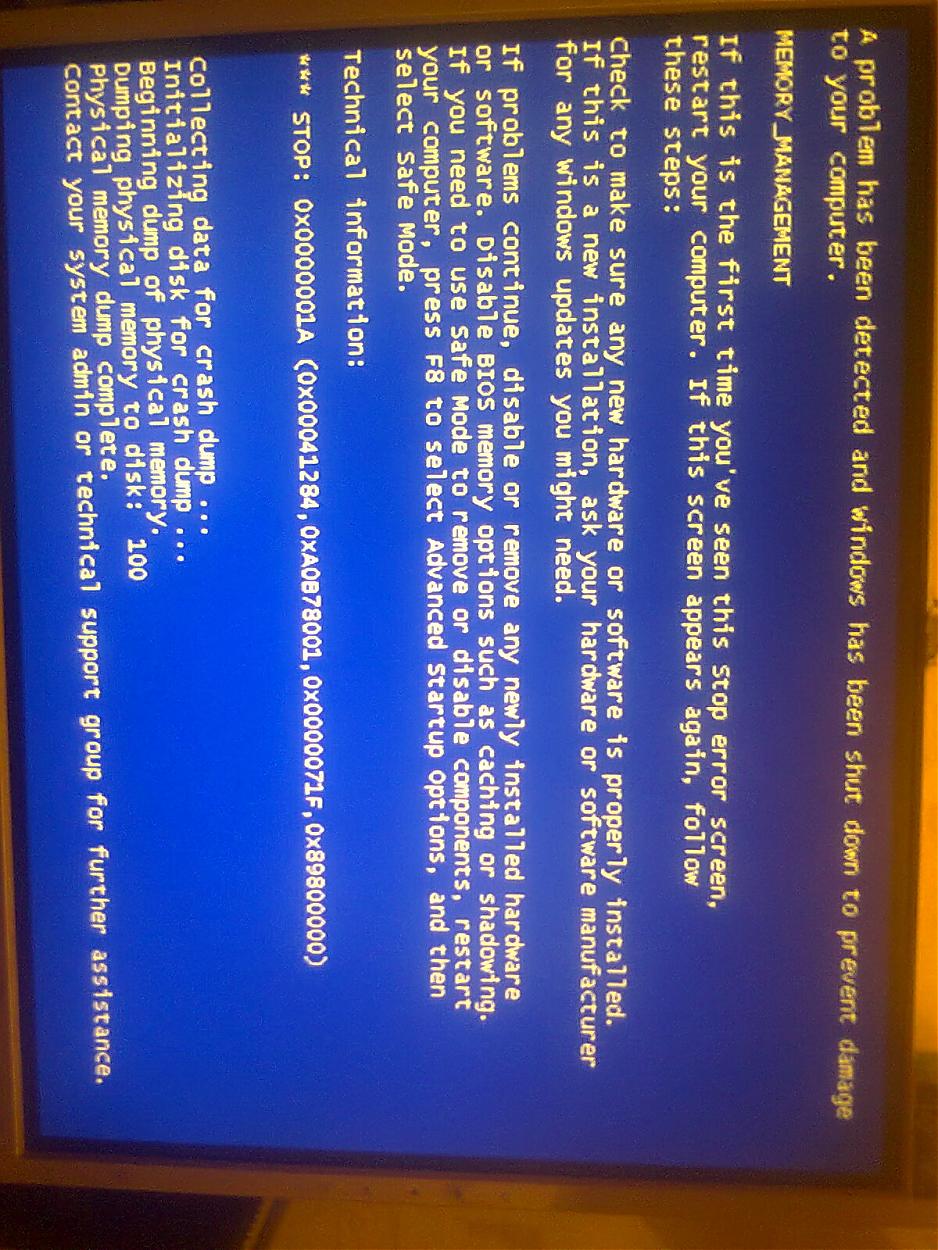 | Компьютерный форум OSzone.net » Сфера Microsoft » Устранение критических ошибок Windows » BSOD - 0x0000001A: MEMORY_MANAGEMENT |
