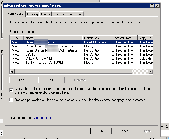 2. Приведите разрешения на каталог OMA 3. Куда указывает Ваш виртуальный каталог OMA? Должен на http:/FQDN/oma/Browse 4. Сверьтесь еще раз: http://www.petri.co.il/configure_oma.htm http://www.petri.co.il/test_oma_in_exchange_2003.htm |