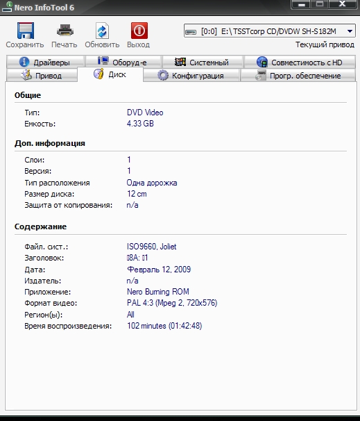 Профиль | Отправить PM | Цитировать 333Danya333, что-то не того, интерфейса Nero-9 я не видел, но там должна быть где-то по опциям информация о диске, там пишется даже фирма изготовителя, поищите.