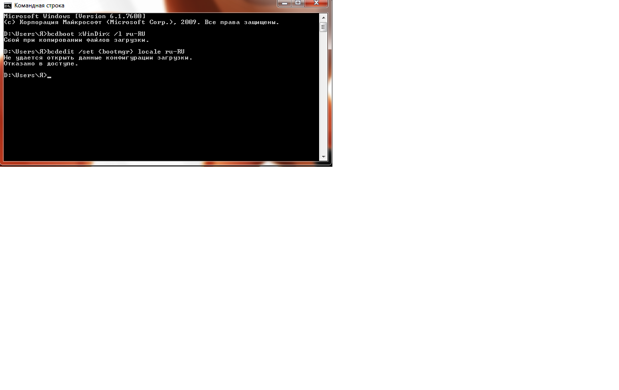 Профиль | Отправить PM | Цитировать Vancouver , простите бестолкового: bcdboot c:\windows /l ru-RU или bcdboot d:\windows /l ru-RU ?