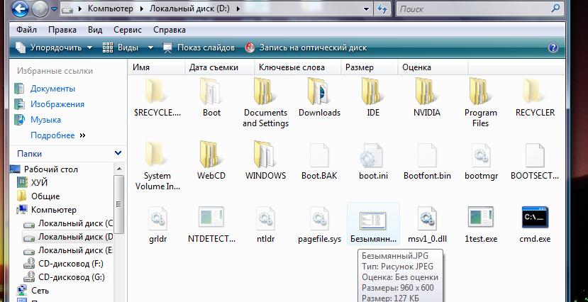 Пришлите скрин диска с папкой Boot, естественно, чтобы скрытые и системные были отражены.
