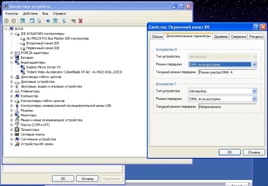 Профиль | Отправить PM | Цитировать Диспетчере устройств в контролерах ATA/ATAPI режим работы дисков: вторичный канал IDE, Первичный канал IDE