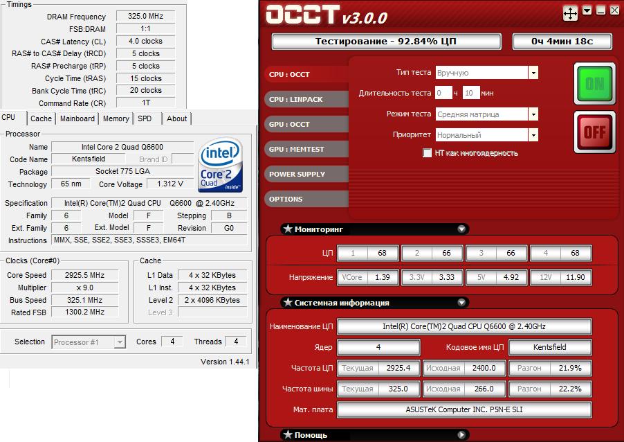 попробЫвал до 1333 поднять 3ghz опять завис поставил на 1300... поставил на 1,4В показывает 1,312 лол |