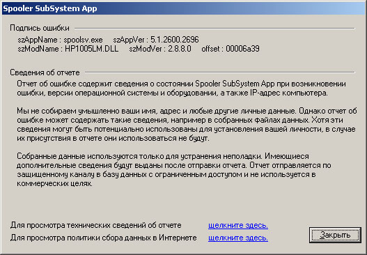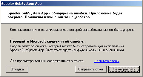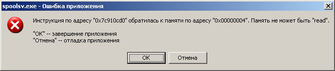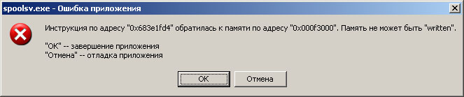 Ошибка - Ошибки при печати (spoolsv.exe)