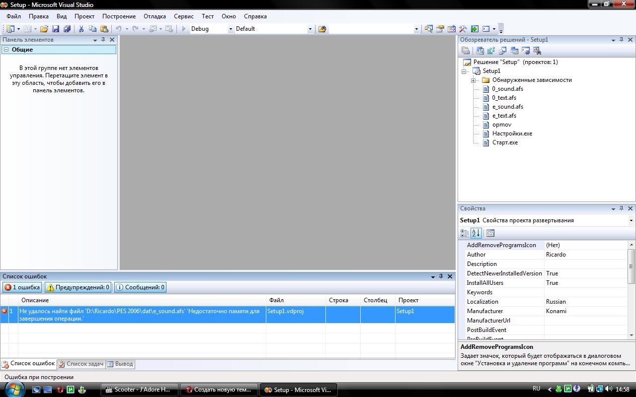 Такая ошибка при создание инсталятора в Visual Studio : Недостаточно памяти для завершения операции ) хотя памяти дофига
