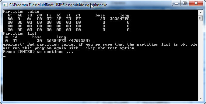 Профиль | Отправить PM | Цитировать При установке Grub4Dos на раздел Usb HDD выдает: