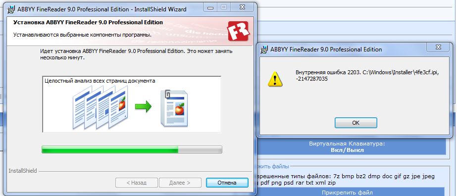 Профиль | Отправить PM | Цитировать Та же история... Не могу установить Fine reader 9 на Windows 7. Система одна стоит на компе, уч. запись администратора, пробовал запускать установщик от имени админа - всё напрасно...