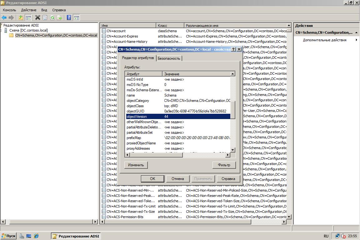 Схема по-моему расширена, просто права не выданы верно. Если через ADSIEdit посмотреть значение атрибута objectVersion по адресу cn=Schema,cn=Configuration,dc=X. »