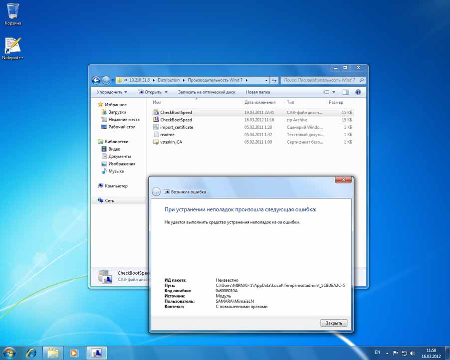 Профиль | Отправить PM | Цитировать Еще я пыталась запустить пакет Вадима, который создает отчет о скорости загрузки Windows 7 и исправляет основные системные проблемы, но он у меня завершается аварийно (см. вложение)