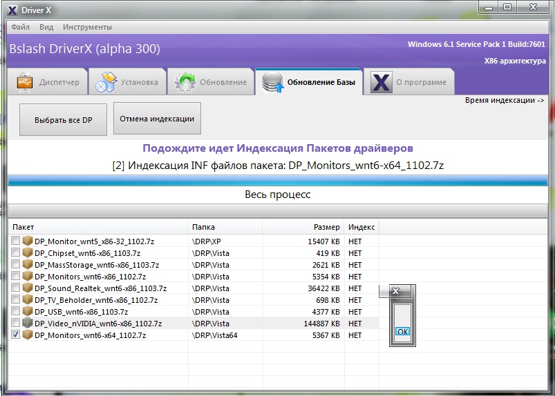 Повторить несколько раз не удалось, один раз всего выскочила.... 2. Почему программа не предупреждает, что есть не проиндексированные драйвер-паки? 3. Почему в программе не предусмотрено выделение драйвер-паков, только те которые не проиндексированы? 3. Почему в программе не предусмотрено проверка на наличие base.db, после индексации ради интереса, прибил base.db, но программа говорит, что у вас базы проиндексированы, это получается что программа уповает только на setings.ini?... 4. Проиндексировал всю свою базу драйверов.... а что дальше делать? На вкладках "Установка" и "Обновление" ничего нет, сплошная пустота.... Программа молчит как партизан... никакой подсказки или окна с предупреждением о том что надо сделать дальше... 5. Тут подымался вопрос о быстродействии программы в индексации, и говорилось, что Bslash DriverX, быстрее всех аналогов, так вот специально провёл тест на быстродействие Bslash DriverX с DIA, и вот результаты время индексирования: - Bslash DriverX - 6 минут - DIA - 1 минута 35 секунд 6. Почему при индексирование время индексации стопорится (не считает дальше) на 3 минутах 16 секундах ? P.S. Windows 7 SP1 x64 |