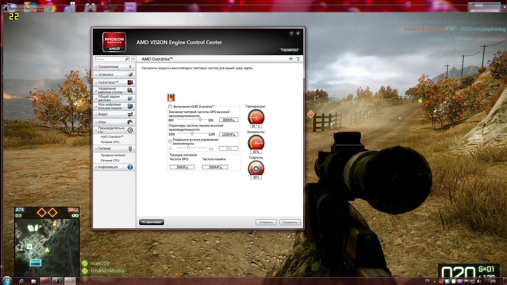 maksus58, запусти игру в окне а потом сделай скрин ССС на вкладке ATI Overdrive »