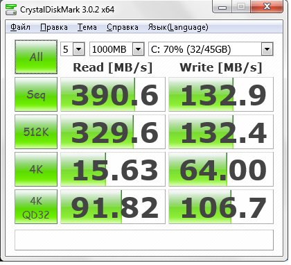 Результаты теста winsat disk