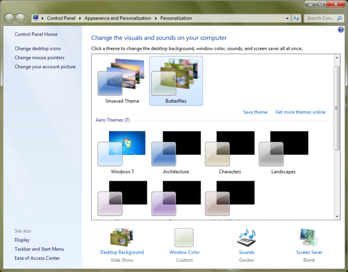 )Windows 7 ultimate SP1 Вобщем сам Aero как-то работает - прозрачность, иконки... Я не могу поменять обои. Я не могу поменять тему (просто слетают все обои и bg становится чёрным) Что было предпринято: Чистка ключей: [HKEY_CURRENT_USER\Software\Microsoft\Windows\CurrentVersion\Policies\System] “Wallpaper”=- “WallpaperStyle”=- [HKEY_LOCAL_MACHINE\SOFTWARE\Microsoft\Windows\CurrentVersion\Policies\System] “Wallpaper”=- “WallpaperStyle”=- Чистка slideshow.ini file in Themes folder. Переименование TranscodedWallpaper.jpg to .old. Добавление ActiveDesktop to HKEY_LOCAL_MACHINE\Software\Microsoft\Windows\CurrentVersion\Policies sfc /scannow Microsoft Windows [Version 6.1.7601] Copyright (c) 2009 Microsoft Corporation. All rights reserved. C:\Windows\system32>sfc /scannow Beginning system scan. This process will take some time. Beginning verification phase of system scan. Verification 100% complete. Windows Resource Protection did not find any integrity violations. C:\Windows\system32> ПерезапускThemes service Ничего не помогло... |