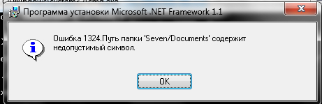 При запуске вылазит окно: "Для запуска этого приложения сначала необходимо установить одну из следующих версий .NET Framework:V1.1.4322 Обратитесь к издателю приложения за инструкциями по получению соответствующей версии .NET Framework" До этого стояла версия фреймворка4 но я ее удалил из-за такой же ошибки Но самая подляна в том что я не могу установить версию 1.1 при установке программы вылазит следующее окно: "Ошибка 1324.Путь папки "Seven/Documents" содержит недопустимый символ" Облазил весь инет по обоим ошибкам, и как понял вся проблема в фреймворке 1.1, если я установлю его, то и игра будет запускаться. Помогите плизз,оч хочу поиграть P.S:заранее спасибо |