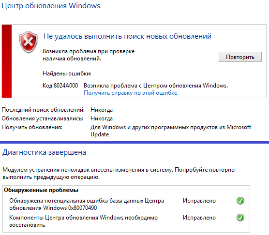 Профиль | Отправить PM | Цитировать 1. диагностика центра обновлений ошибка 0x80070490, пишет что иправлена