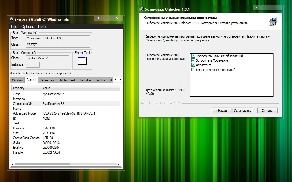 Профиль | Отправить PM | Цитировать Здравствуйте. Как бы кто не любил Autoit, но в процессе установки любой программы всегда лучше по возможности обойтись без подобного WinActivate(), ControlClick() и тому подобных команд, тем более при установки такой программы как unlocker, так как все что делает готовый установщик, это копирует файлы в директорию Program Files, создает запись в реестре на удаление програмы (появиться в аплетте Установка и удаление программ) и регистрирует "свою dll-ку".