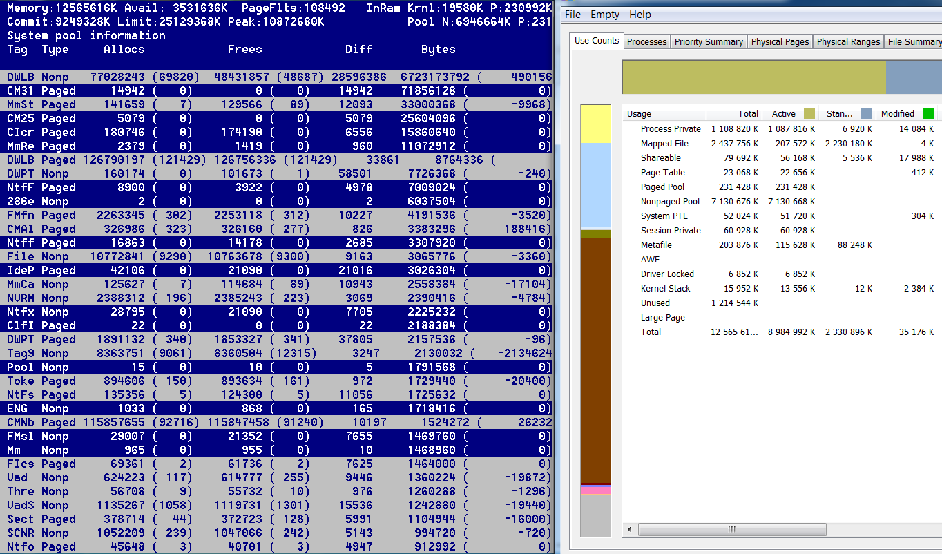 1. При появлении проблемы запустите RAMMap и сделайте скриншот вкладки Use Counts. 2. Если вы видите высокoe значениe NonPaged Pool:
