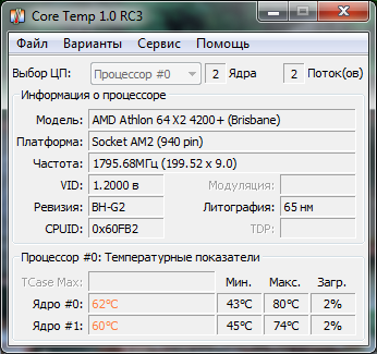 Перегревается процессор AMD Athlon 64 x2 4200+(Brisbane). Без нагрузки температура держится в районе 40-55 а под нагрузкой 55-80(дальше стараюсь не греть), как то раз температура дошла до 120 градусов.