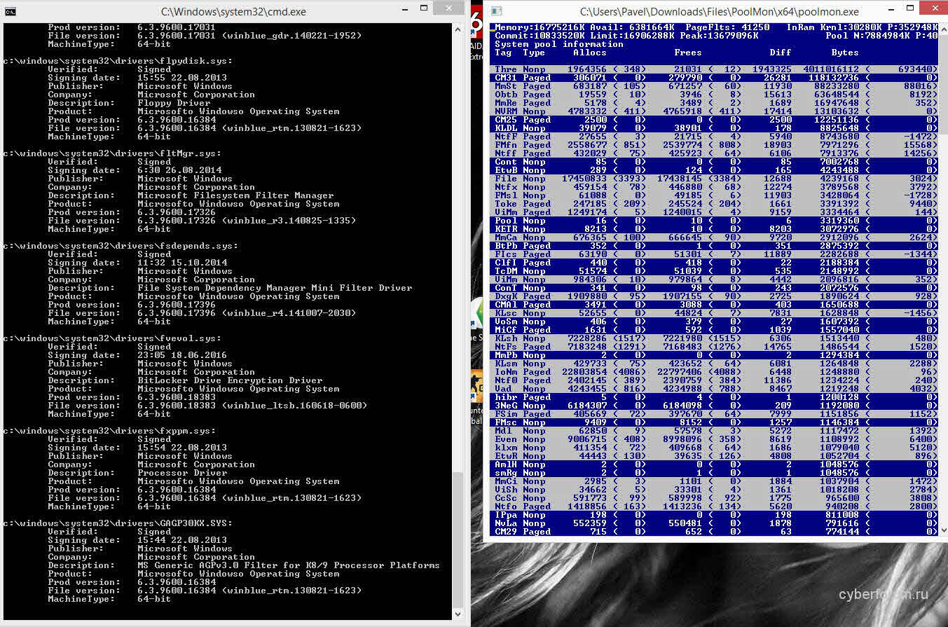 1. Запустите RAMMap и покажите скриншот вкладки Use Counts во время глюка. 2. Если утечка в Nonpaged Pool или Paged Pool - причина в каком-то из драйверов. Чтобы его определить: