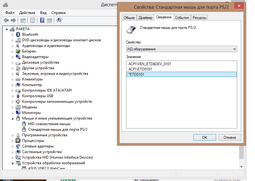 йадро, выложите скриншот раздела "Мыши и иные указывающие устройства"из диспетчера устройств (Сведения=> ИД оборудования). »