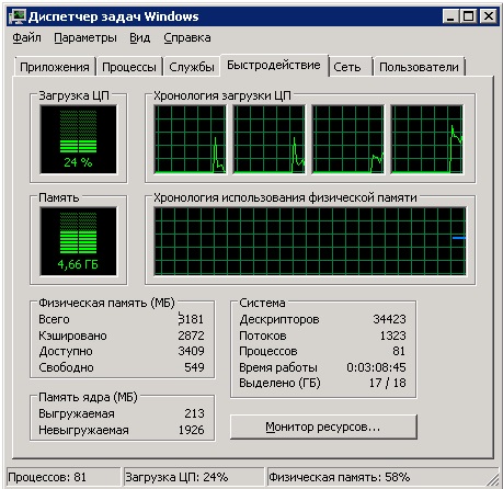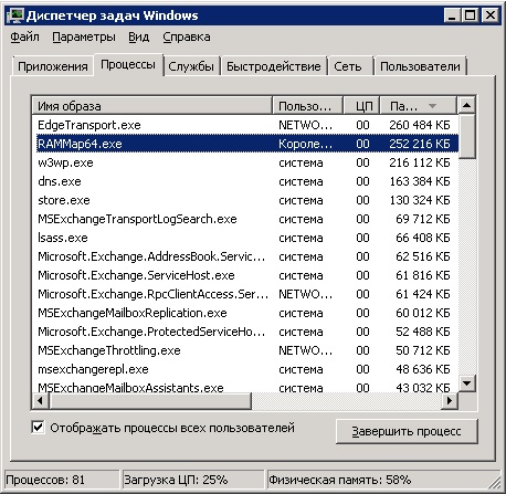 Имею сервер на Windows Server 2008 + Exchange 2010 (со всеми обновлениями) Так же на нем подняты AD, DHCP, DNS, IIS. Не так давно началась утечка памяти. Съедается полностью и сервер зависает. После перезагрузки, если не стартовать службу банк данных Exchange, сервер работает как часы. Если стартуем банк данных, на протяжении небольшого времени все в норме, но потом начинается постепенная утечка памяти, которая примерно через 10 часов приводит к зависанию сервера. В логах пусто. Что было сделано мной: Поставил все обновления; был уменьшен размер кеша базы данных (минимум установлен в 3гб, максимум в 6Гб, а всего оперативной памяти установлено в сервере 8Гб) Скриншоты прилагаю. (сделаны после 5-6 часов после ребута сервера) PS Знаю что получится это вылечить переустановкой Exchange, но хочется найти все таки решение данной проблемы. Помоги советом господа, буду очень признателен. |