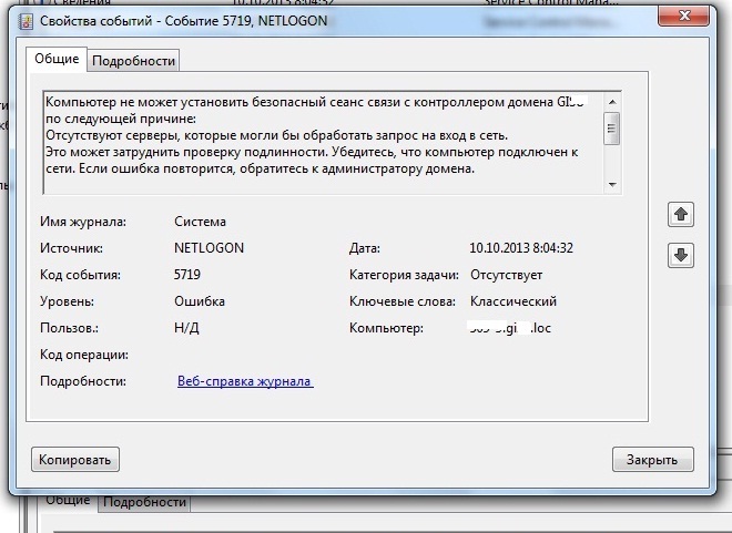 В логах целый ряд ошибок, из-за которых после ввода пароля "Пожалуйста подождите" и так висит долго или пока не вытащишь сетевой кабель. Клиент - w7 x32. КД - 2008 r2. Проблема данная на нескольких компьютерах. Куда копать для ее решения? |