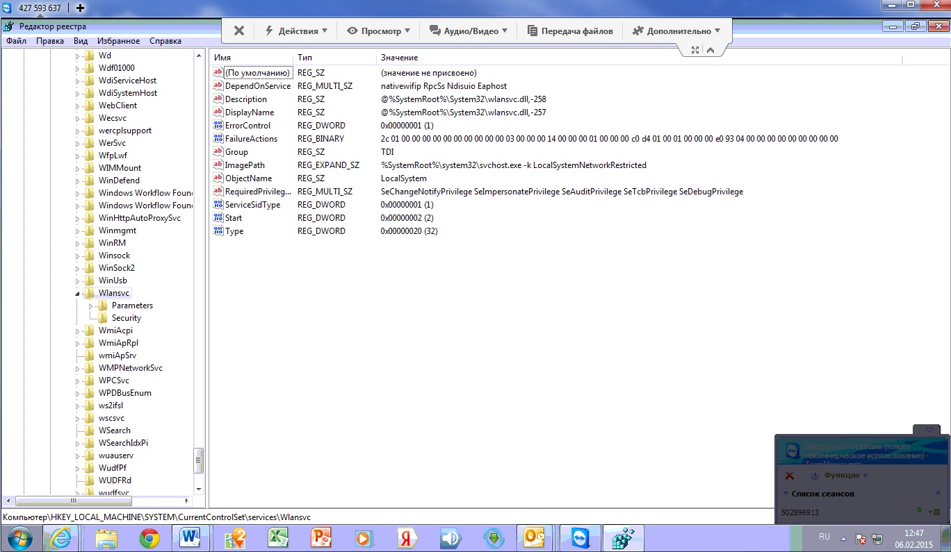 Сделайте скриншот раздела реестра в развернутом виде HKEY_LOCAL_MACHINE\SYSTEM\CurrentControlSet\services\Wlansvc |