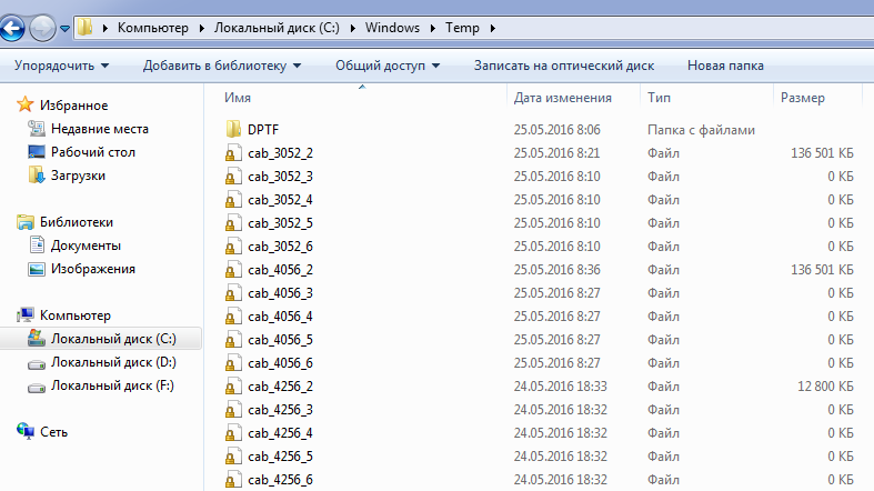 "Ничего подобного" - это нет временных файлов в каталоге C:\Windows\Temp с вашего скриншота? Они у вас остались потому, что вы не дали доработать makecab'у до конца (например, перезагрузили компьютер) - это его временные файлы. Посмотрите что у вас в каталоге C:\Windows\Logs\CBS, на размер файлов в частности. Там бывают ну очень большие файлы, которым архивироваться нужно много-много времени. PS: В C:\Windows\Temp можете совершенно спокойно удалять все, у меня вообще его чистит планировщик каждый день удаляя все файлы старше суток. |