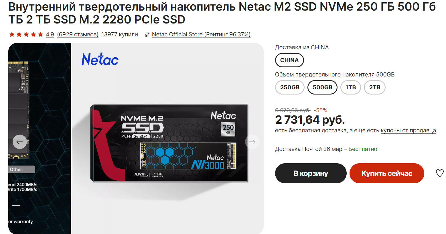 ссд - 500 ГБ SSD M.2 накопитель Netac NV3000 |