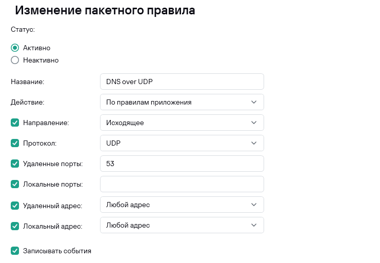 Firewall - Kaspersky Standard сетевые правила