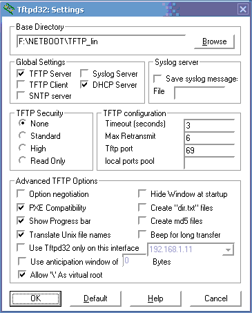 Профиль | Отправить PM | Цитировать вот настройки TFTP