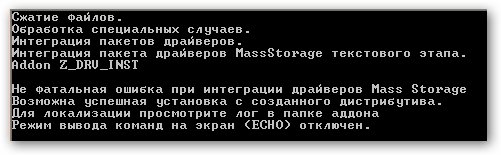 1 Create 0n-the-fly mass storage text mode drivers Make support to: VMware SCSI Controller (vmscsi.sys) Driver file D\M\VM\vmscsi.sys not found! Skip this driver... Make support to: VIA SATA/PATA IDE controllers (videX32.sys) Driver file D\M\V\3\videX32.sys not found! Skip this driver... дальше в том же духе 2 ; Finish setting section [POSTSETUP_SETTINGS] KeepDrivers = 0 InstallPanels = 1 MakeShortcut = 0 AutoCleanup = 1 CopySource = 0 UseRunOnceEx = 1 SilentFinishMode = 0 UseMakeOEMDrvPnf = 1 RunOnceExKey = ZZZZ_002 DEL "%Systemdrive%\*.ini хочу что бы после установки всё зачистилось но файлы ini остаются в чём дело где ошибки ? другие аддоны не использовались брался чистый дистрибутив |