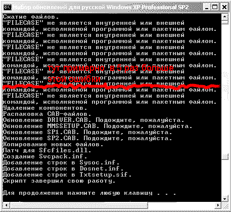 Профиль | Отправить PM | Цитировать нужно filecase.exe кинуть в папку c RusUpdatePack.