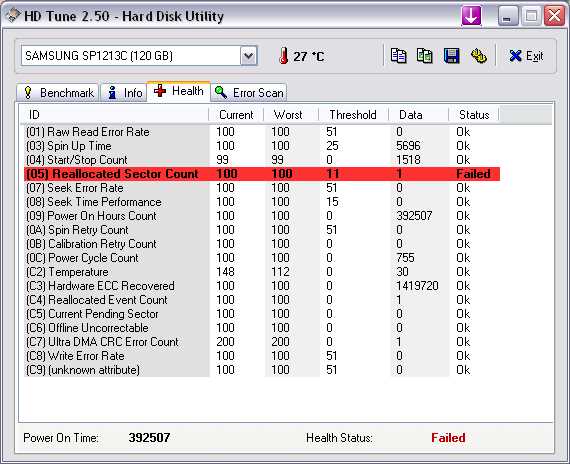Запустил программку HD Tune 2.50 и на вкладке Health увидел следующую картину (см. скрин). Вопрос: Что происходит с жестким диском (приближение его смерти или нет)? Если приближается смерть, то все понятно (замена жесткого диска). Если это просто какой-то глюк, то как его вылечить? P.S. С помощью MHDD еще не проверял, но постараюсь это сделать в ближайшее время. О результатах напишу. Пока хотелось бы услышать ответ на мой вопрос. |