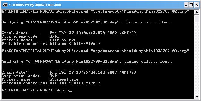Crash date: Thu Feb 26 11:06:12.187 2009 (GMT Stop error code: 0xD1 Process name: Idle Probably caused by: lsnat.sys ( lsnat+13cee ) Crash date: Tue Feb 24 20:55:25.656 2009 (GMT+3) Stop error code: 0xD1 Process name: explorer.exe Probably caused by: tcpip.sys ( tcpipIterateOverSTrie+137 ) |