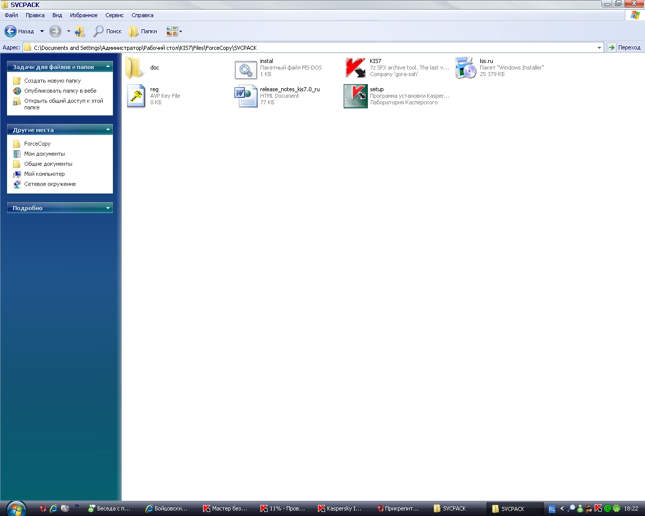 Делается так: 1.Запускаем установку KIS7.0.0.125ru.exe. 2.Идём по пути *:\Documents and Settings\All Users\Application Data\Kaspersky Lab Setup Files\Kaspersky Internet Security 7.0.0.125\Russian находим и переминовываем kis.ru.msi в kis6.ru.msi 3.Распаковывается KIS7.7Z. 4.Открываем Winrarом kis7.exe и перетаскиваем drag'and'drop в него kis6.ru.msi и ключ xxxxxxxx.key 5.Радуемся и благодорим viksem за качественную работу не умоляя при этом заслуг Jekson07. |