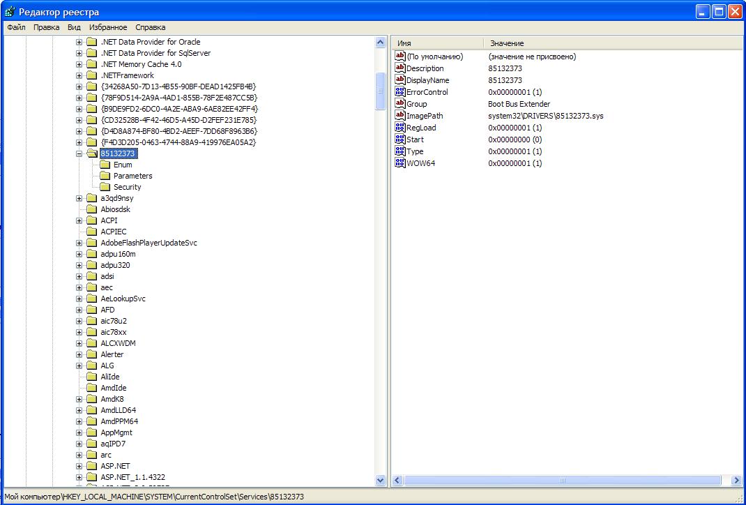 HKEY_LOCAL_MACHINE\SYSTEM\CurrentControlSet\Services\85132373 Цитата: